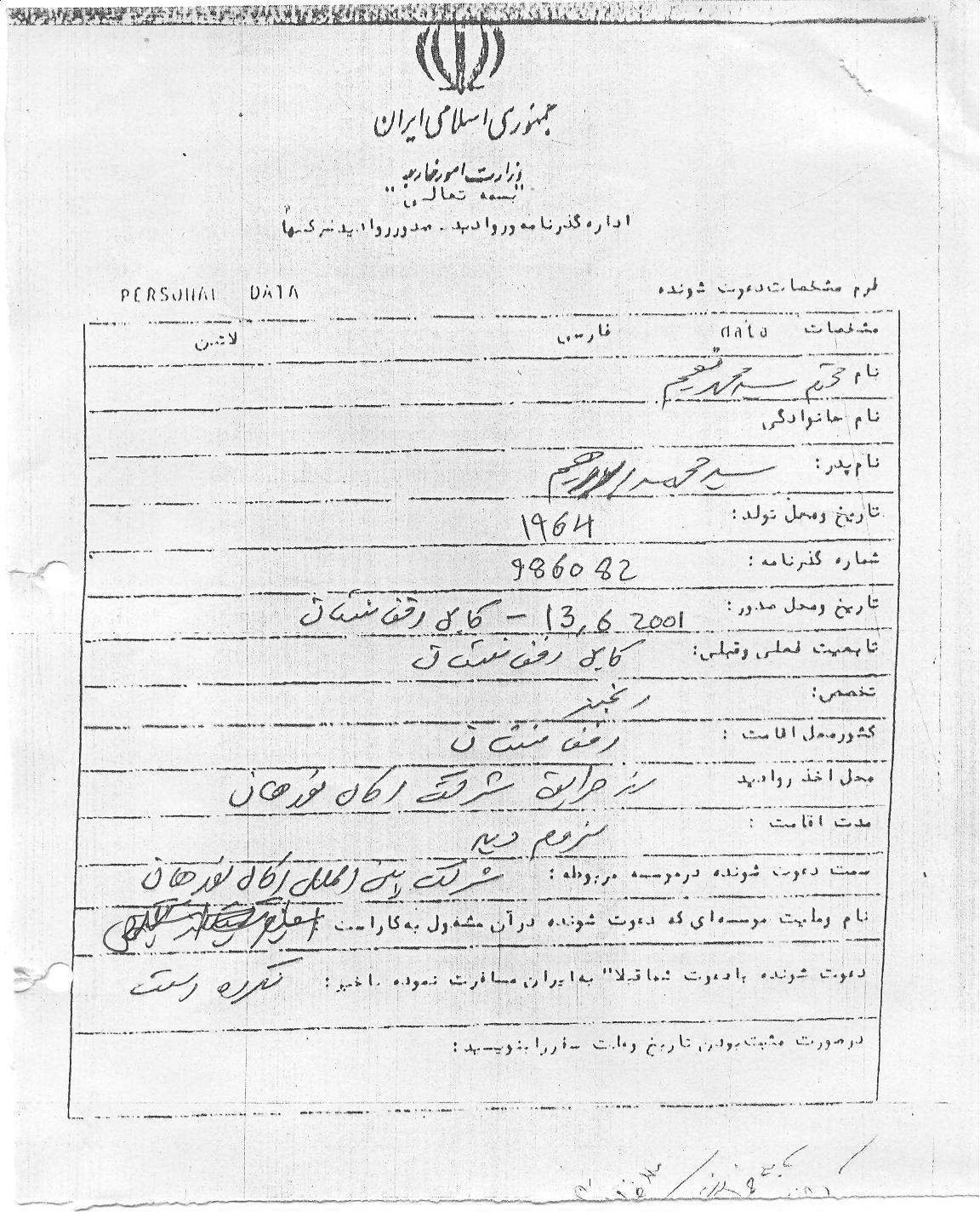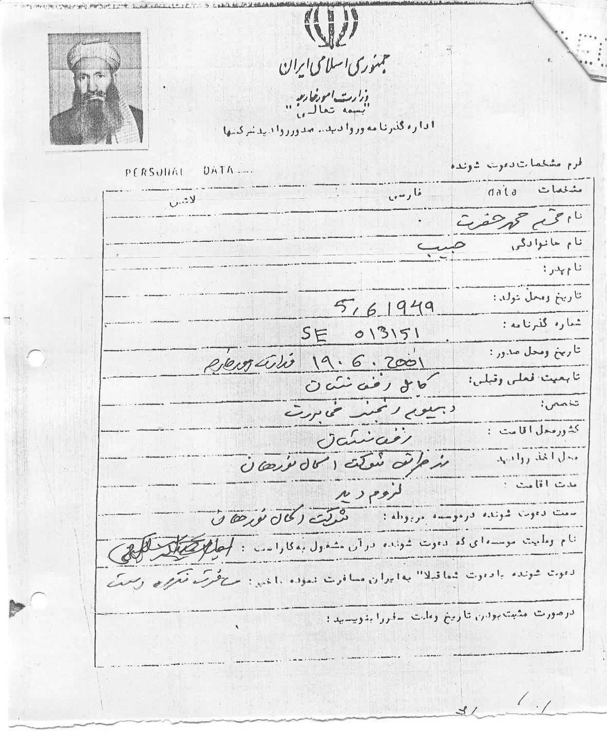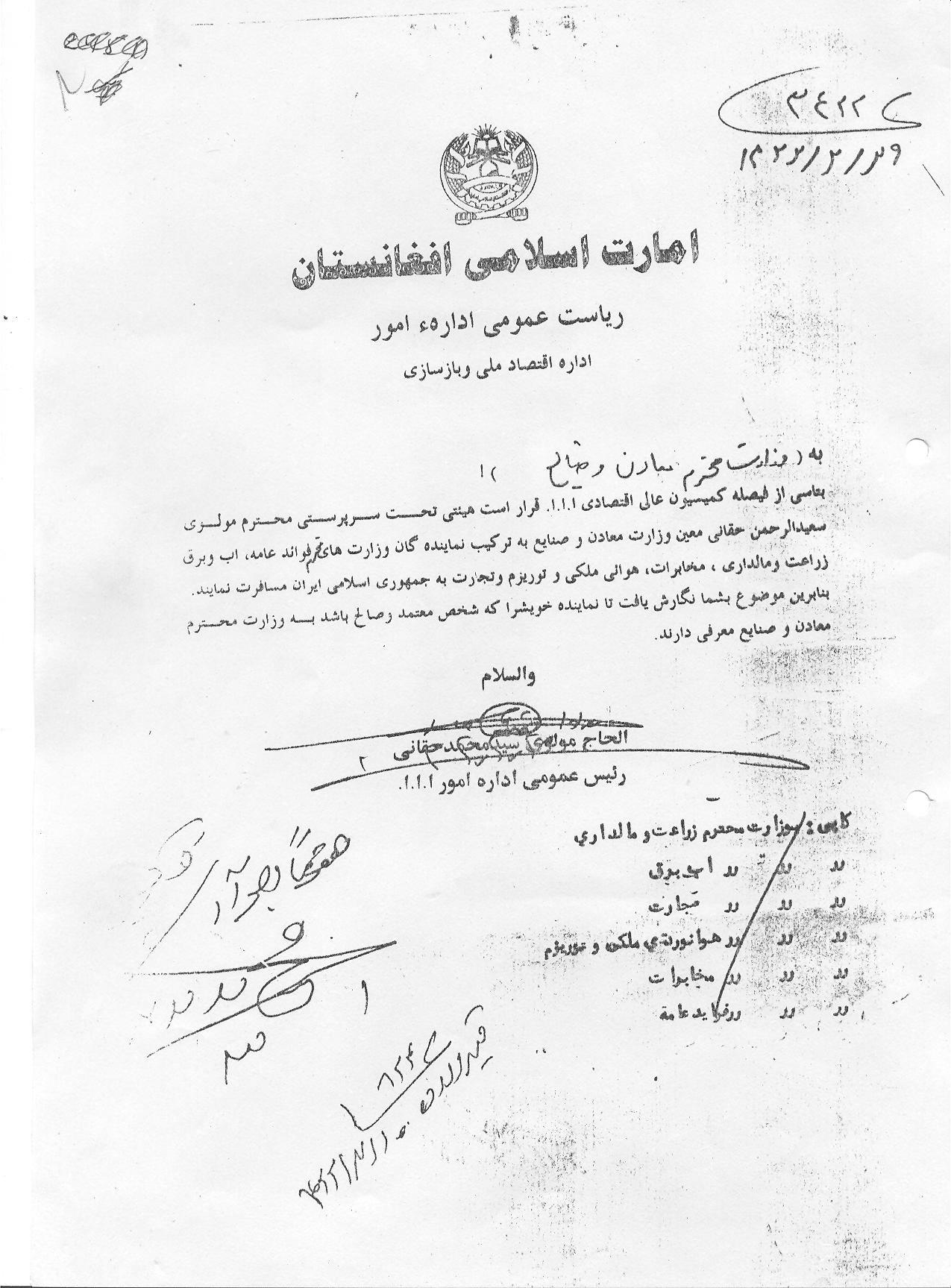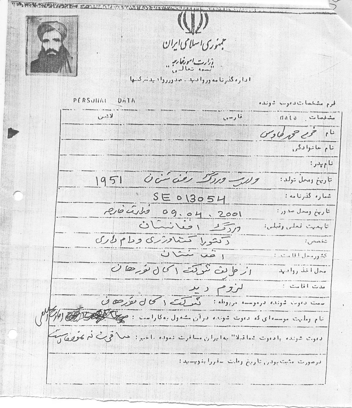 هیأت طالبان در چندین نوبت مخفیانه به ایران سفر کردند که به طور نمونه اسناد سفر یکی از هیأت را به شرح زیر مشاهده می کنید: